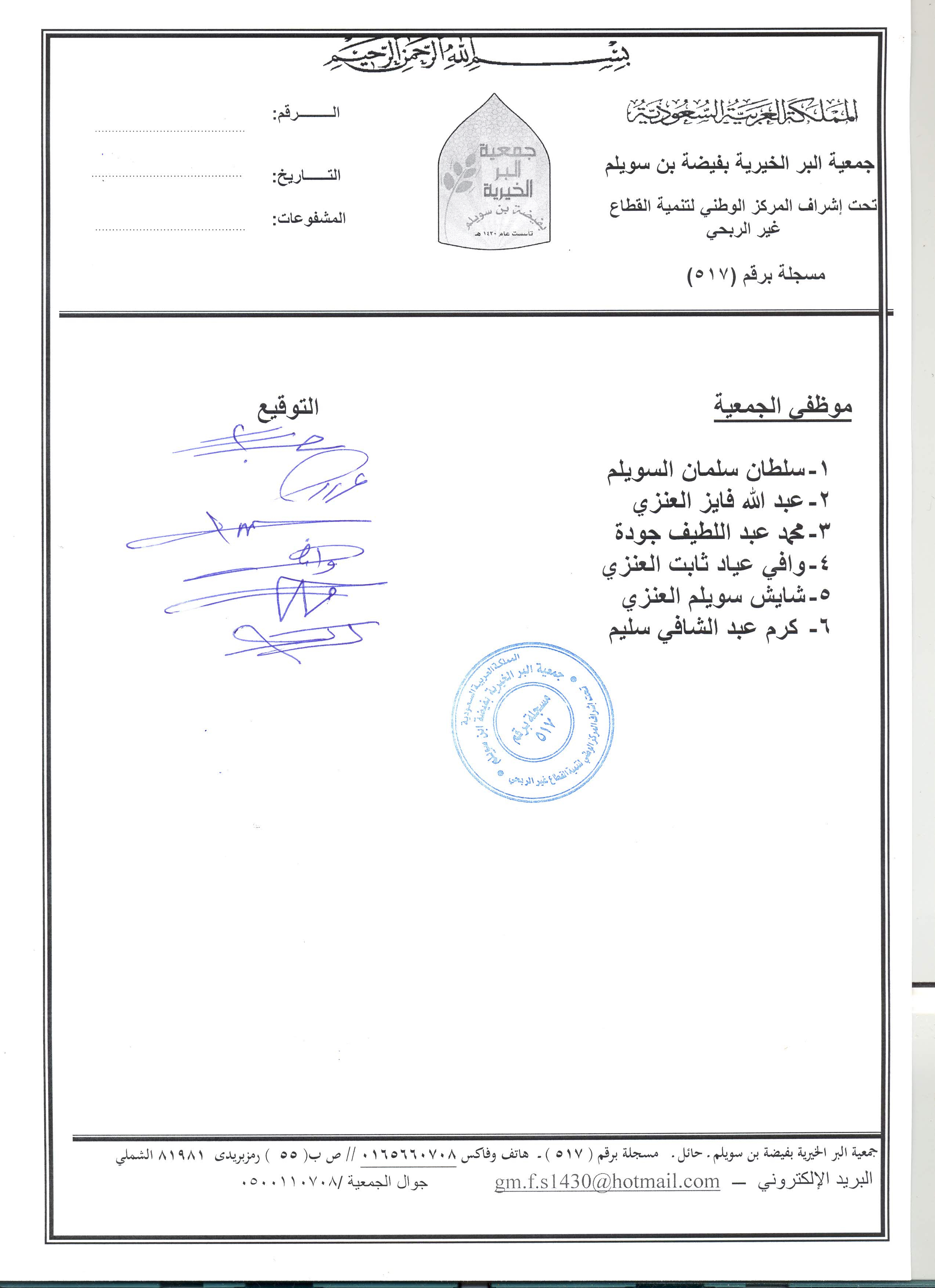 أسماء موظفي الجمعية الخيرية بفيضة بن سويلم